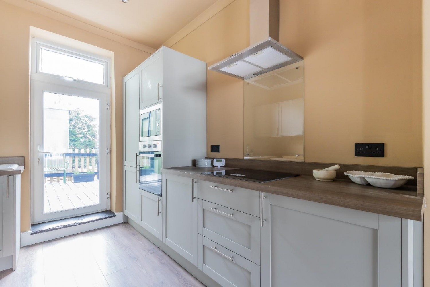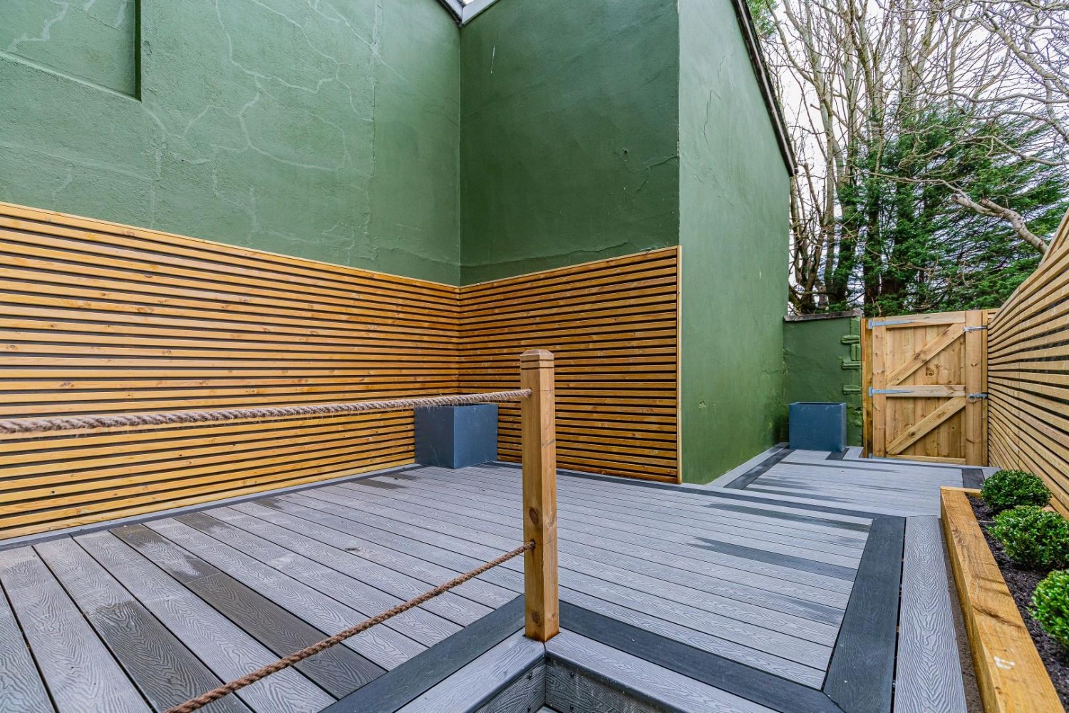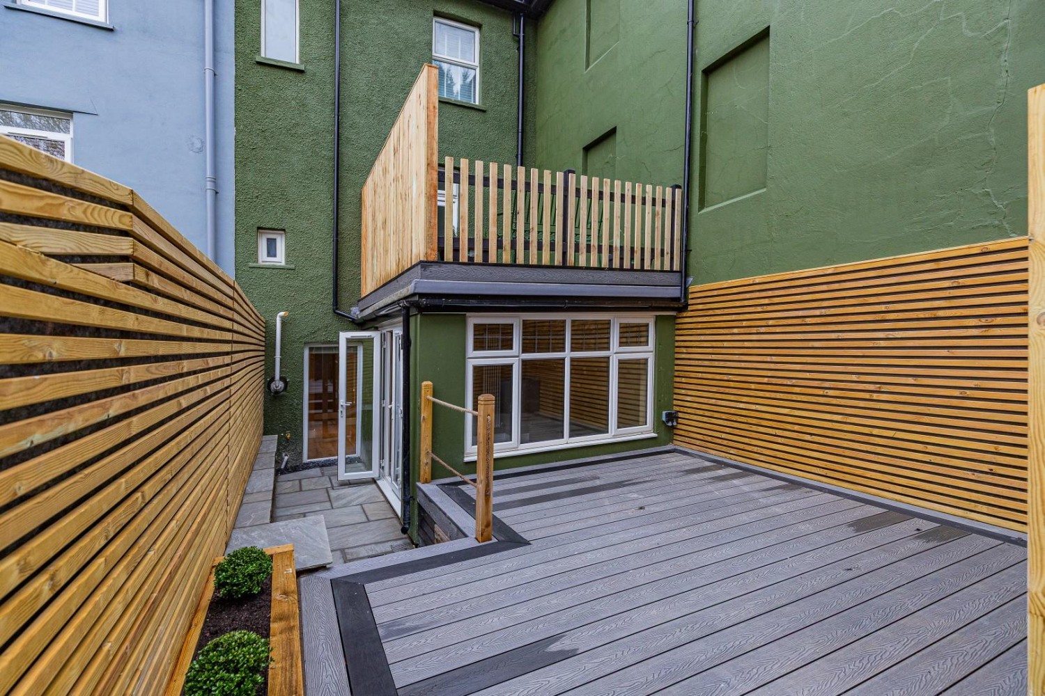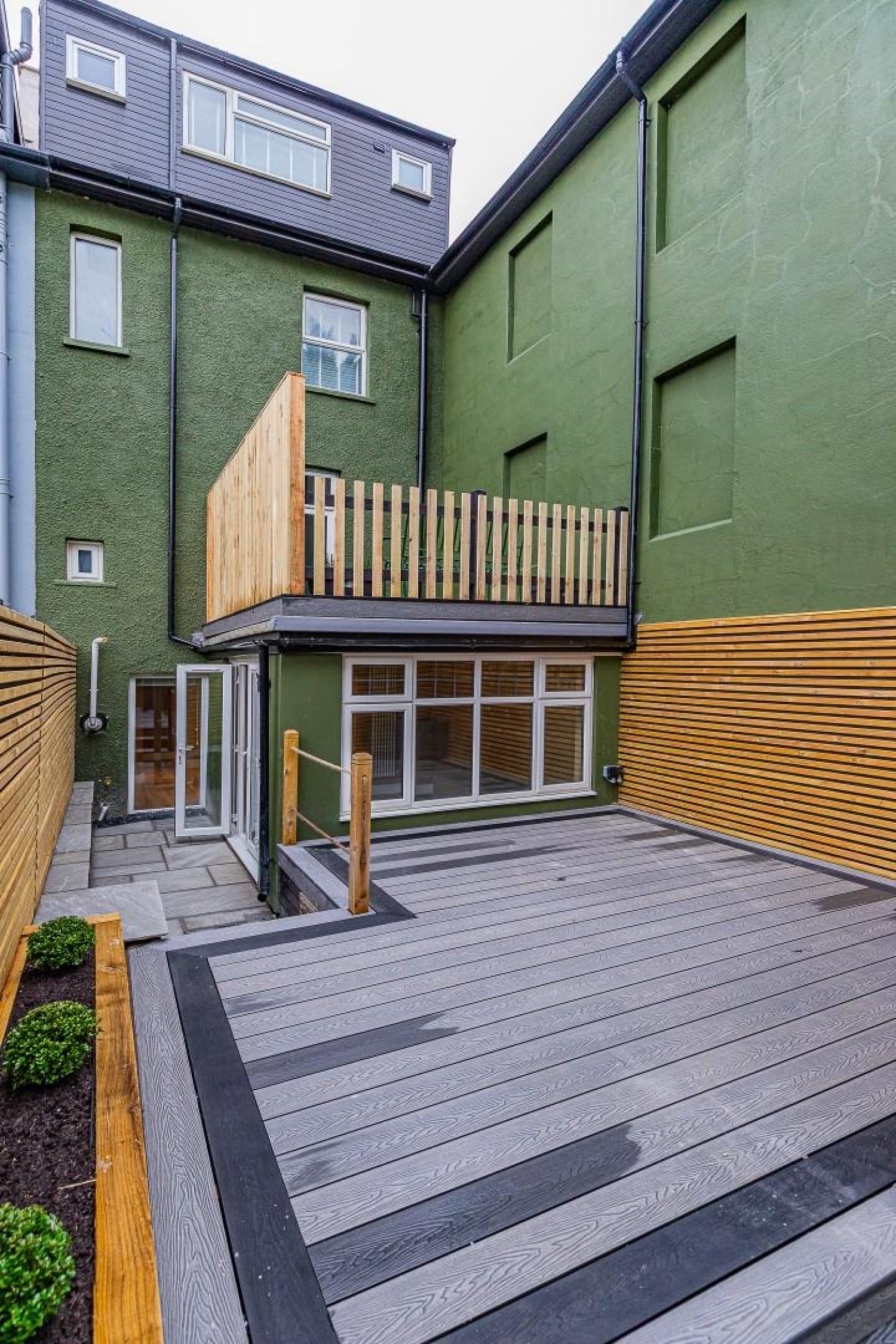 Forecourt and fenced rear garden laid mainly to composite decking from the lower ground floor. There is also a raised terrace from the ground floor which is ideal for summer alfresco dining.