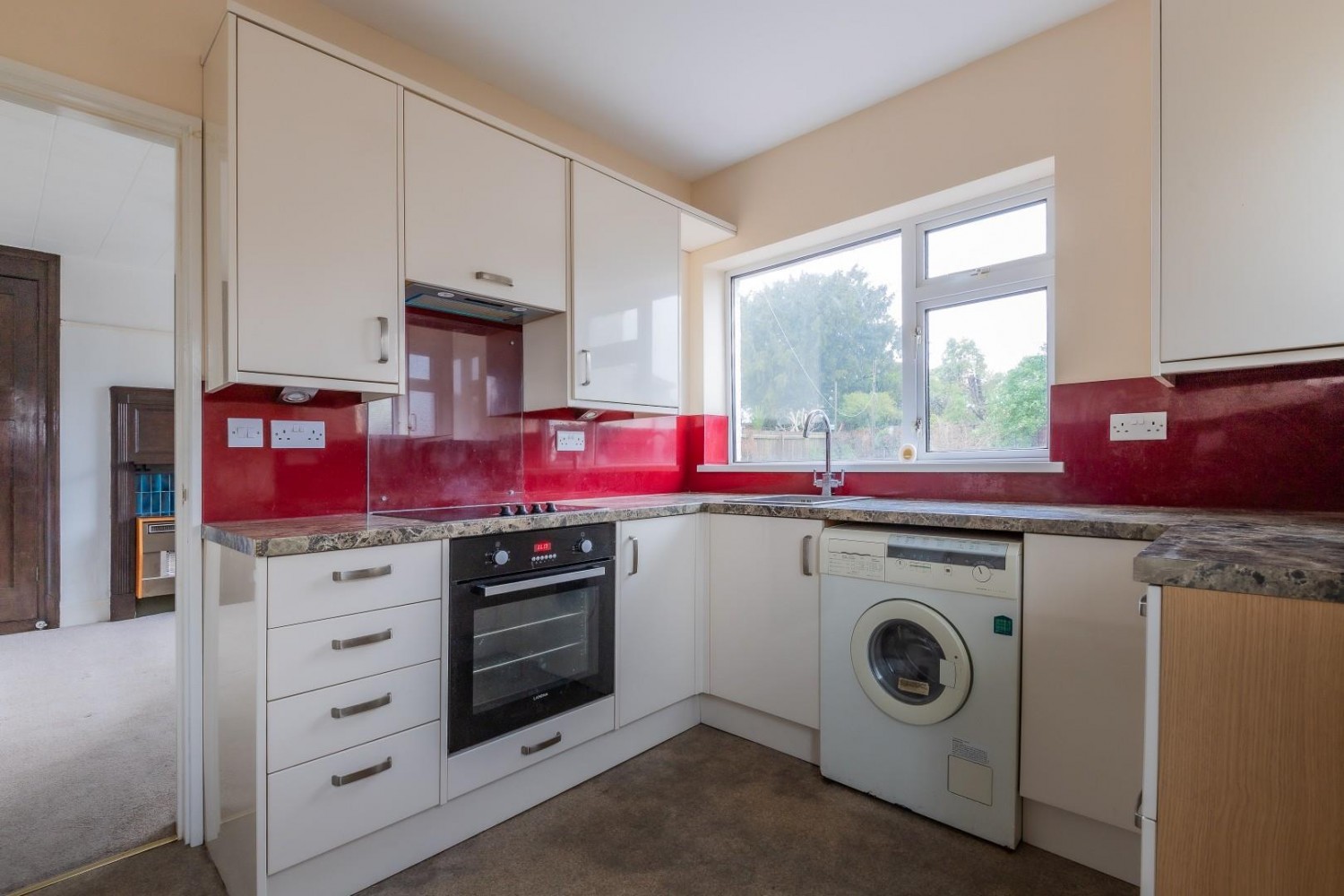 Fitted with an extensive range of contemporary wall and base units with laminate worktop and an inset stainless steel sink with mixer tap, features include soft close doors & drawers plus 2 corner carousel units, plumbed for washing machine with space for fridge/freezer and built in oven, hob & hood, concealed gas combination boiler (replaced 2008), window to rear plus side door into the garden, heated white towel rail/radiator.